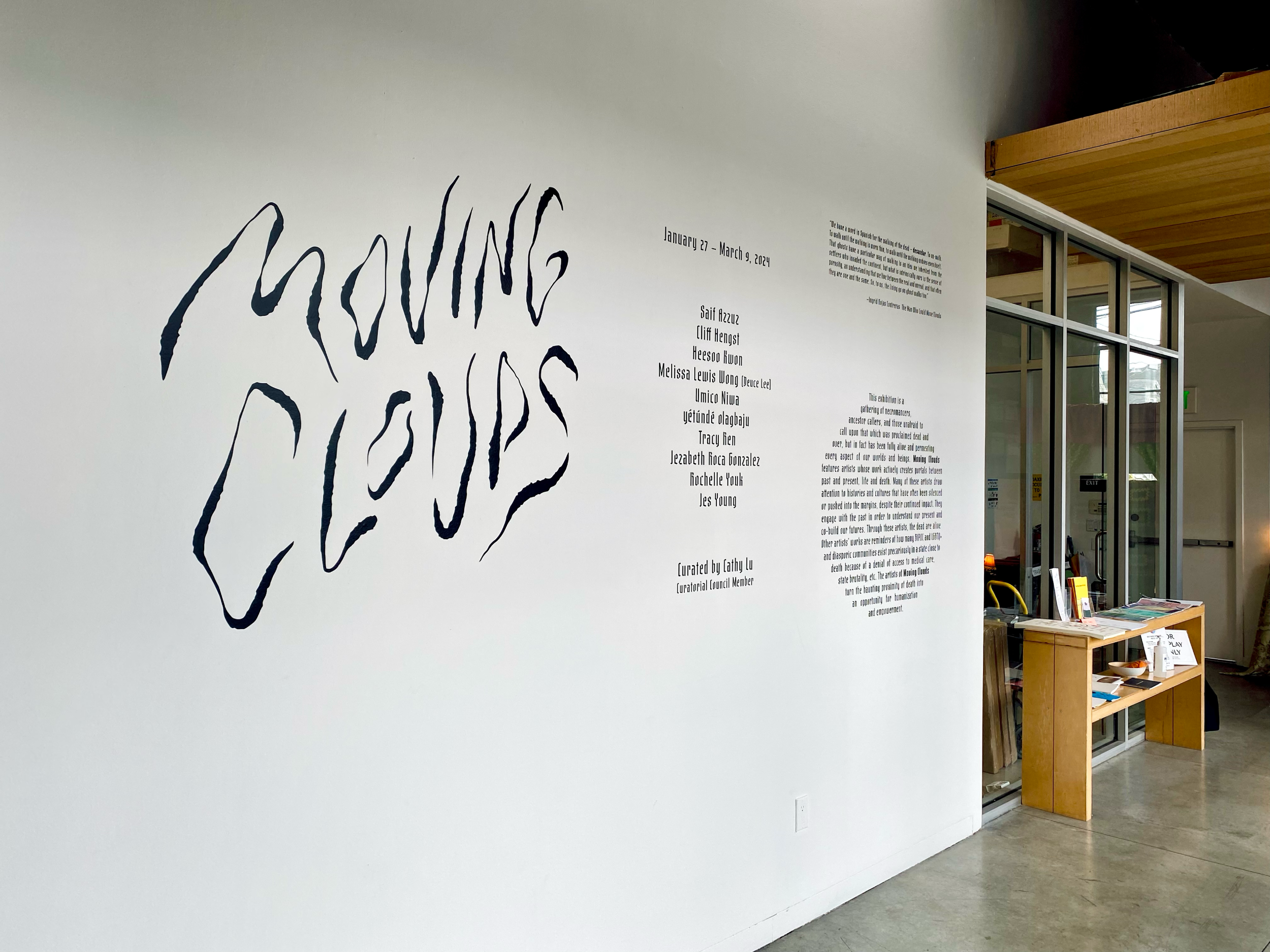 I designed the exhibition identity, wall vinyl, and posters for Moving Clouds, a group show that took place in early 2024 at Southern Exposure, curated by Cathy Lu. Posters were beautifully risograph-printed by Colpa Press, and were free to visitors during the exhibition.